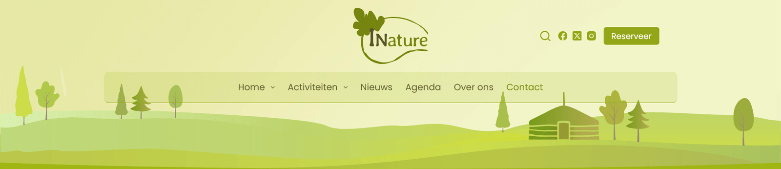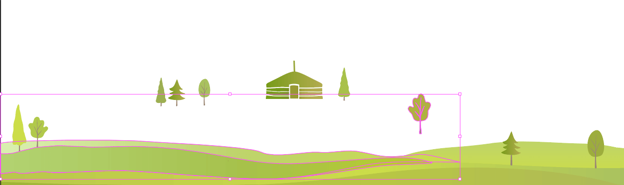 Yurt en bomen illustraties bewerken en combineren. Afstemming vorm en kleur en passend maken op volle breedte, voor tablet en mobiel.